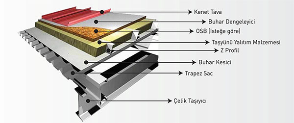 Kenet çatı, minimum %5 eğimi olan çatılarda uygulanan, geleneksel veya modern tüm mimariye kolayca adapte olabilen, göze çarpıcı ve canlı hatlar sergileyen metal çatı kaplama sistemidir.